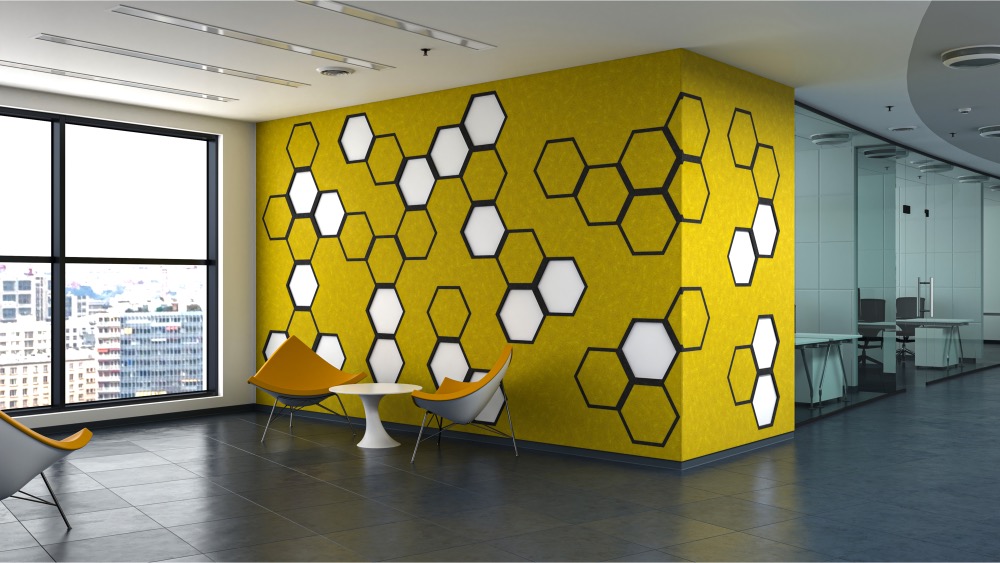 Geometric Inlay wall panels showcase intricate, precision-cut shapes and patterns expertly embedded into acoustic surfaces. This design approach adds dimension and refined detail, creating visually striking walls that balance form and function. Perfect for contemporary commercial, educational, and hospitality spaces, Geometric Inlay elevates interiors with clean lines and sculptural depth while delivering effective sound absorption.