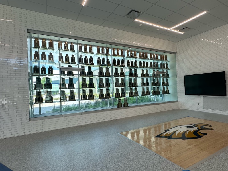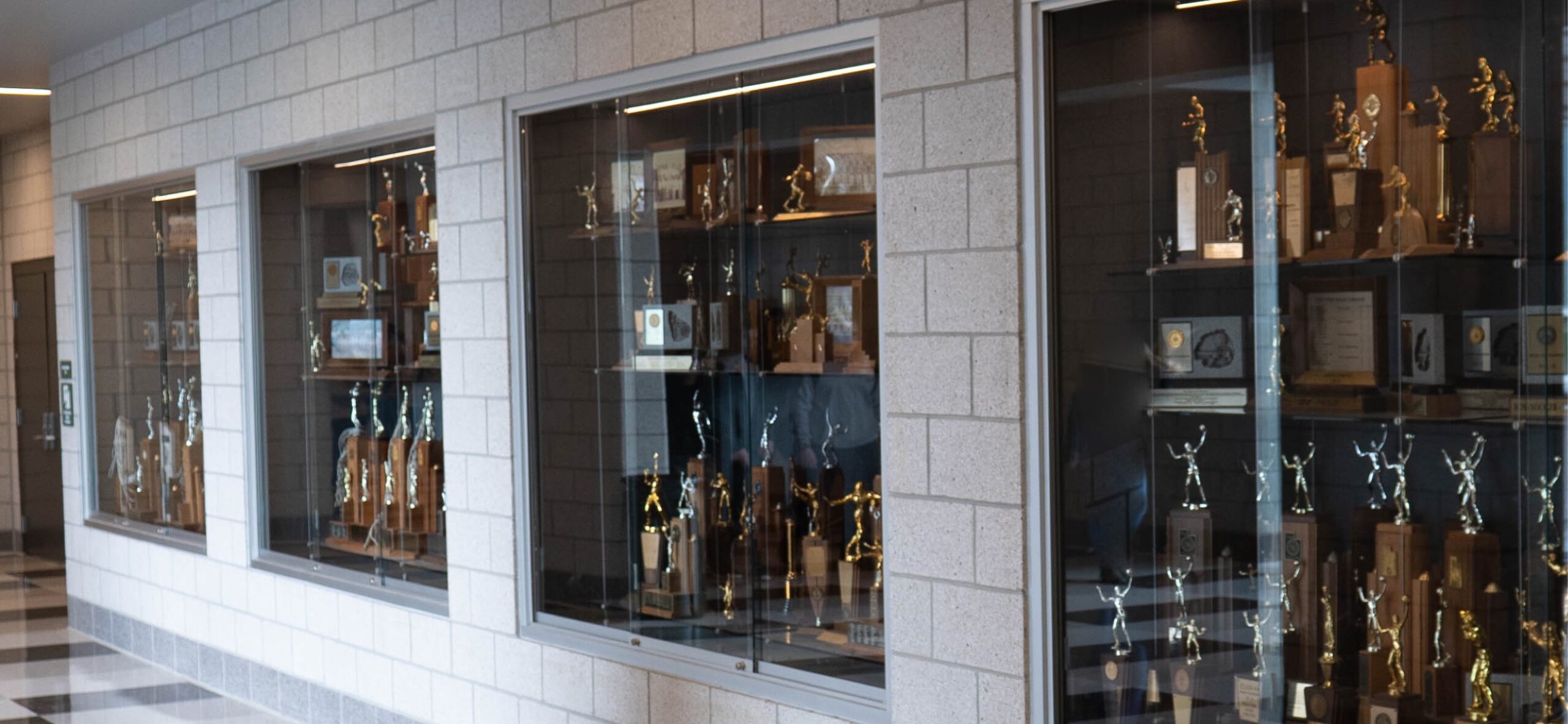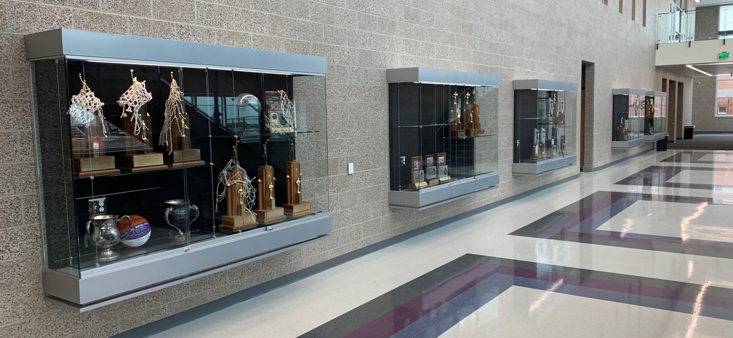 ShowVault™ Pivot Door trophy display cases are built-in architectural showcases engineered for high-traffic environments where visibility, security, and design all matter. Featuring a full-framed aluminum body and pivoting tempered glass doors, these cases offer front-facing access without sacrificing the clean, streamlined look. Whether recessed into a single wall or installed as a double-sided room divider, ShowVault™ offers unmatched flexibility with premium finishes and acoustic PET felt backing to reduce glare and echo.